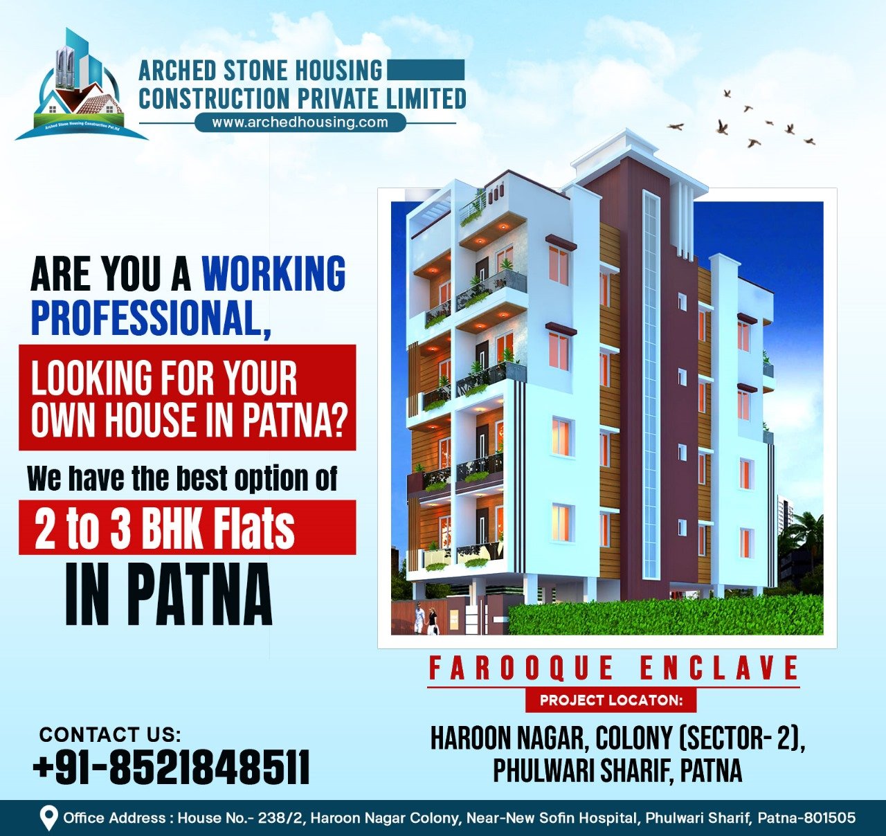 You must choose Arched Stone Housing because we are the best real estate agency in Patna. Our two main buildings R.K Heights & Farooq Enclave are the pioneer of modern infrastructure with an electric vehicle charging point and terrace garden.