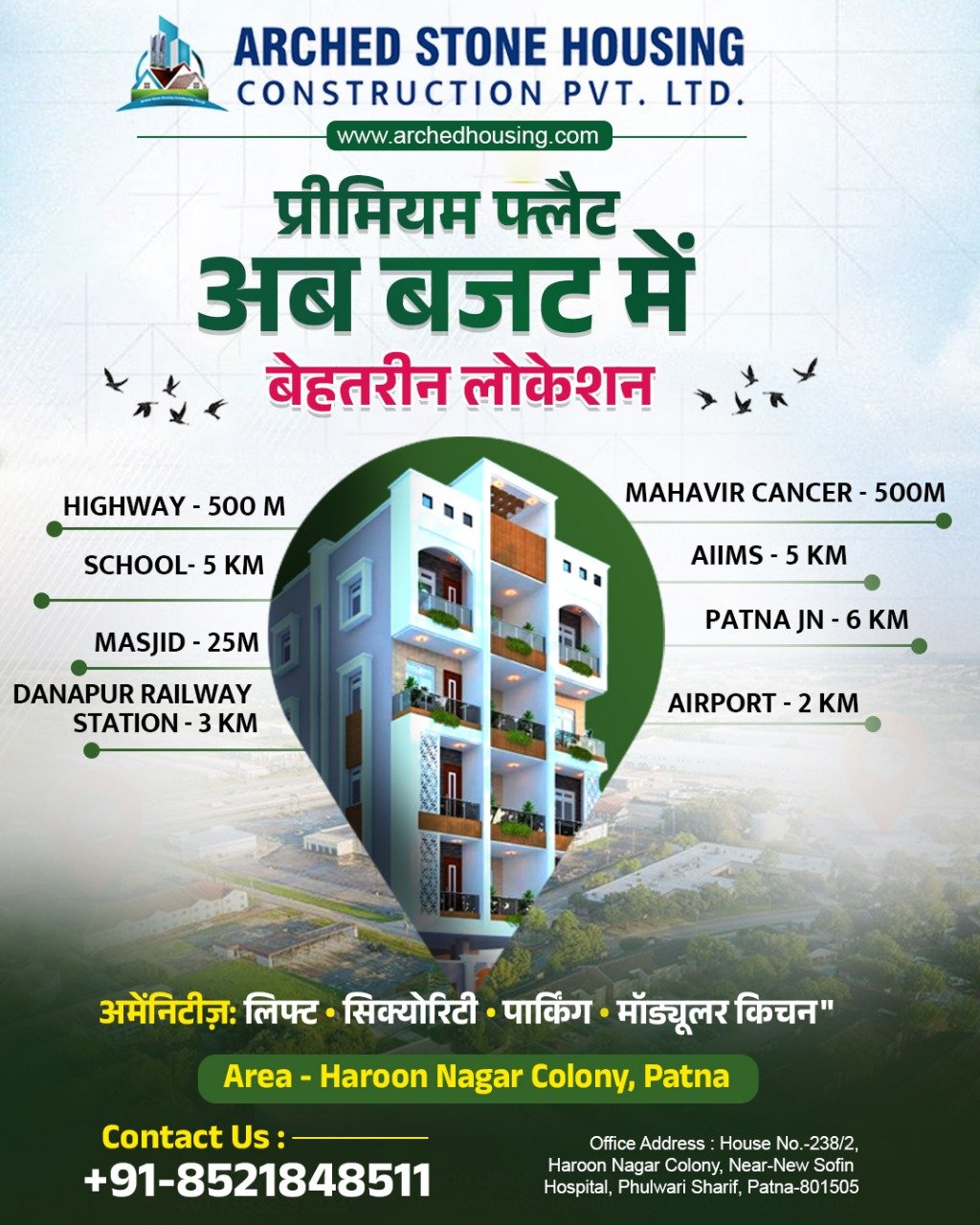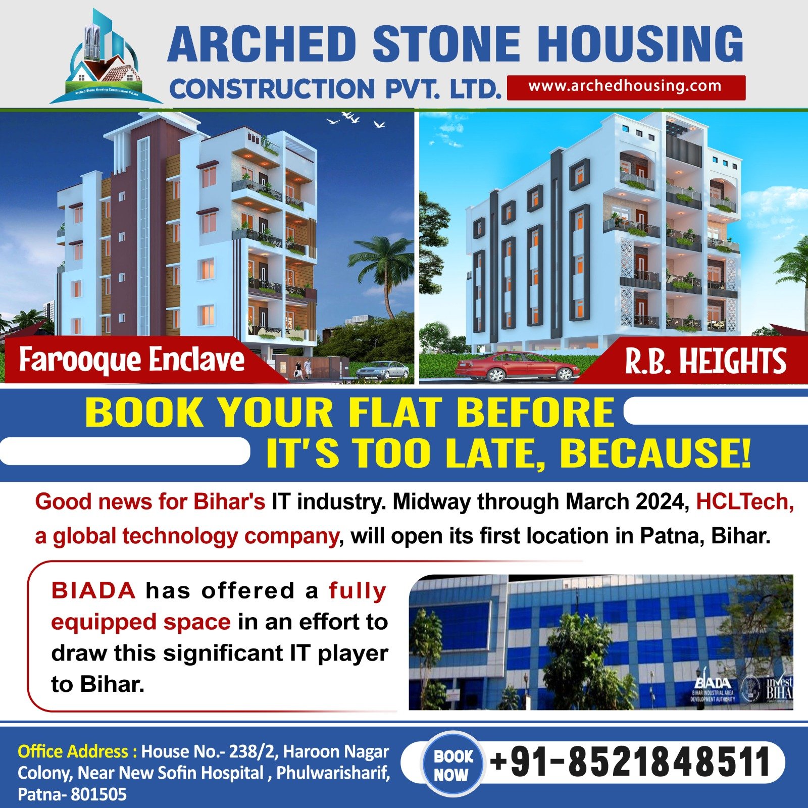 You must choose Arched Stone Housing because we are the best real estate agency in Patna. Our two main buildings R.K Heights & Farooq Enclave are the pioneer of modern infrastructure with an electric vehicle charging point and terrace garden.